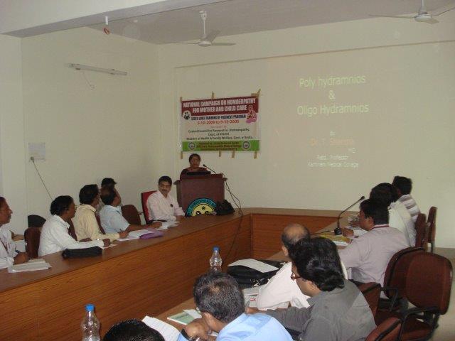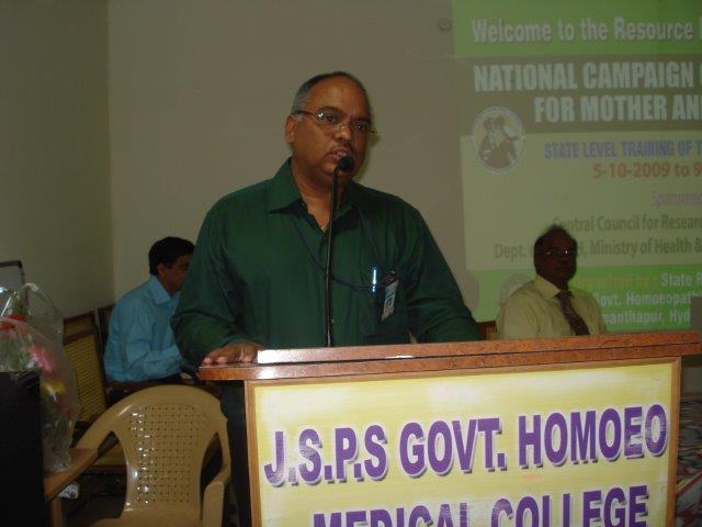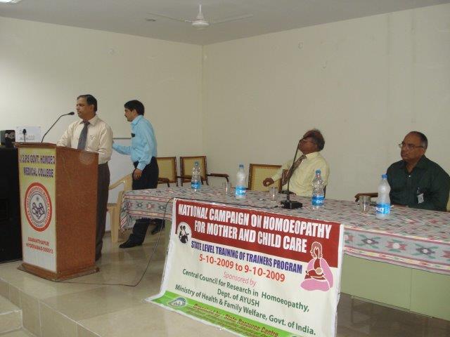 As a part of this a State level Training Porgramme for Trainers (STOT) was organised to train the 50 members of Trainers from various categories from the state, including, Chief medical officers, Hospital Medical superintendents, NGOs, Homoeopathic Organisations Indian Institute Homoeopathic Physicians, Institute of Practicing Homoeopathy, Medical officers from Dept of Ayush and NHRM, Private Practitioners, Executives from REACH, HELF, EMRI, APHMA, to train the local practitioners at the district level programmes. The training module prepared by the Central Council for Research in Homoeopathy (CCRH) with financial assistance of the World Health Organisation (WHO) aims at the capacity building and skill enhancement of the Homeopathic practitioners whilst dealing with common mother and child health problems.