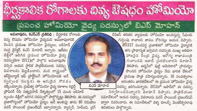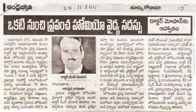 An international mega event , 66 th ‘World Homoeopathic Congress 2011’ on “ Homeopathy for Public Health” was held in New Delhi in the first week of December. The event kicked off on WorldAIDS DAY on 1st of December and continued till 4 th of December. The event was held for the fourthtime in India. The earlier congresses were held in year 1967, 1977 and 1995. This congress has beentermed as ‘Homeopathic KumbMela”