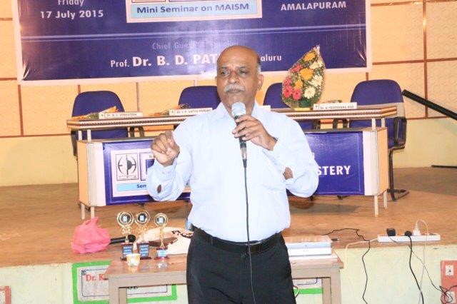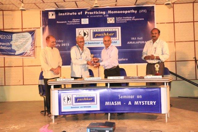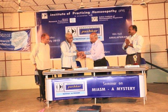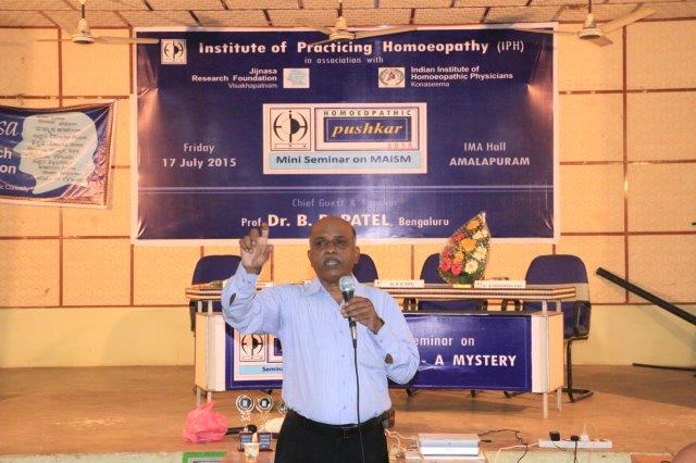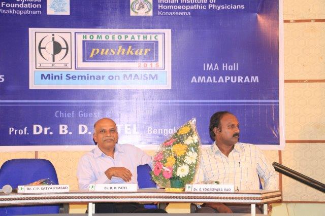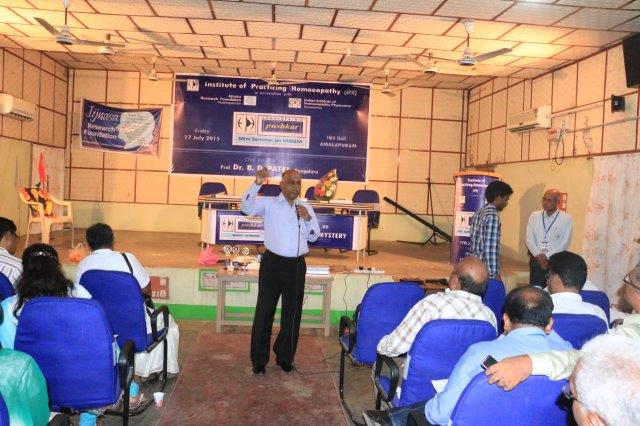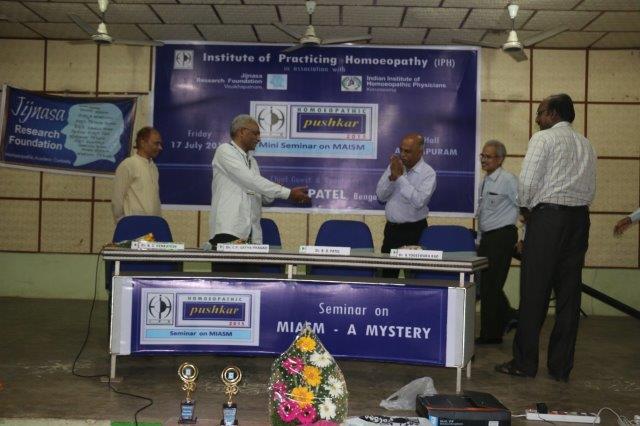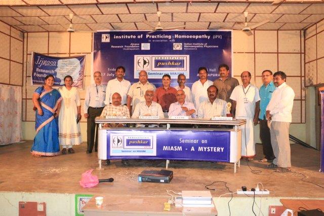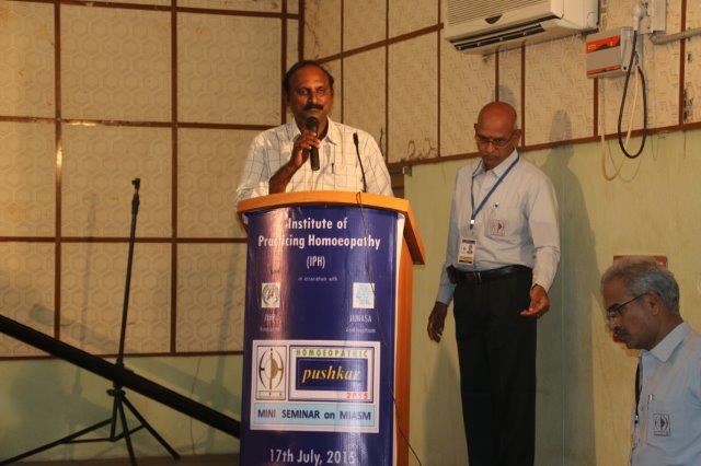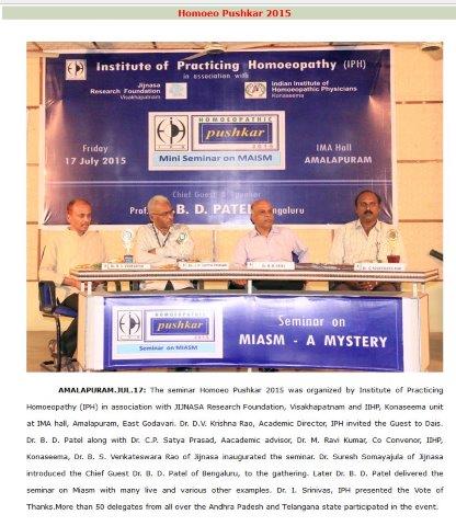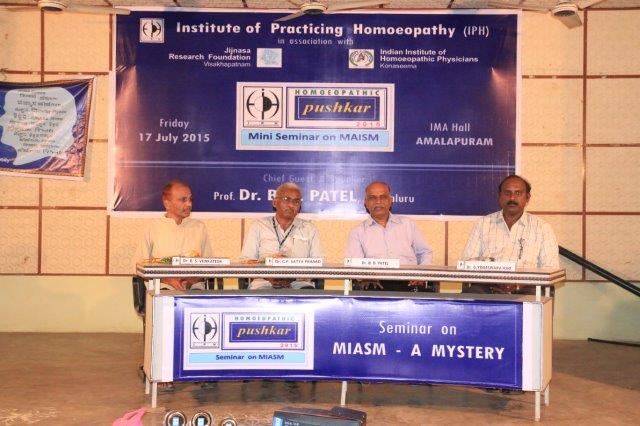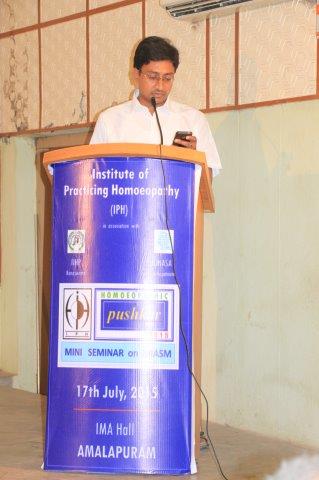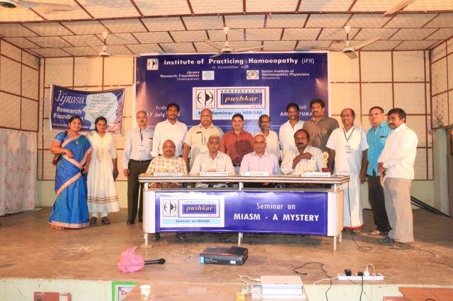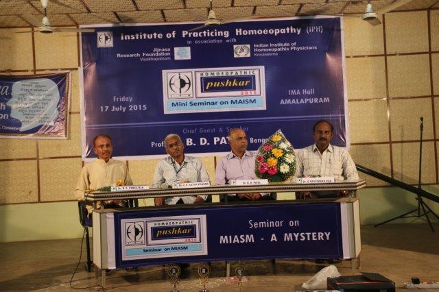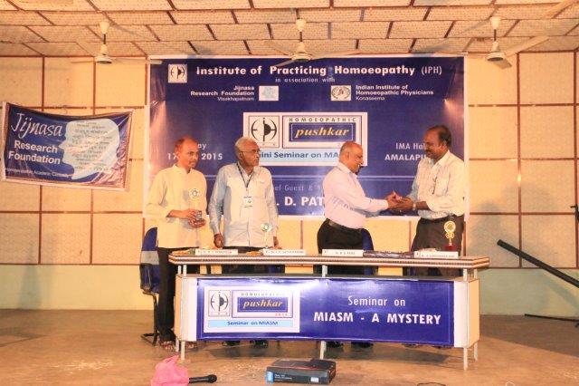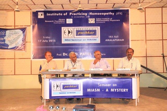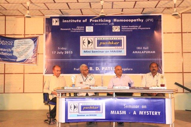 Dr. Suresh Somayajula of JIjnasaintroducted the Cheif Guest Dr. B. D. PATEL of Bengaluru, to the gathering. Later Dr. B. D. PATEL delivered the seminar on MIASM with many live and various other examples which made the delegate with enthusiastic. More than 50 delegates from all over the Andhra Padesh and Telangana state were participated. Dr. I. Srinivas of IPH presented the Vote of Thanks.
