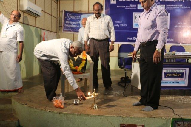 The seminar was organised by Institute of Practicing Homoeopathy (IPH) in association with JIJNASA Research Foundation, Visakhapatnam and IIHP - Konaseema unit. Dr. D.V. KRISHNA RAO, Academic Director, IPH invited the Guest to Dais. Dr. B. D. PATEL along with Dr. C.P. SATYA PRASAD, Aacademic advisor, Dr. M. RAVI KUMAR, Co Convenor, IIHP, Konaseema, Dr. B. S. VENKATESWARA RAO of JIJNASA inaugurated the seminar.